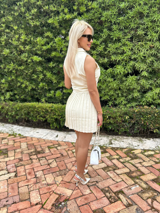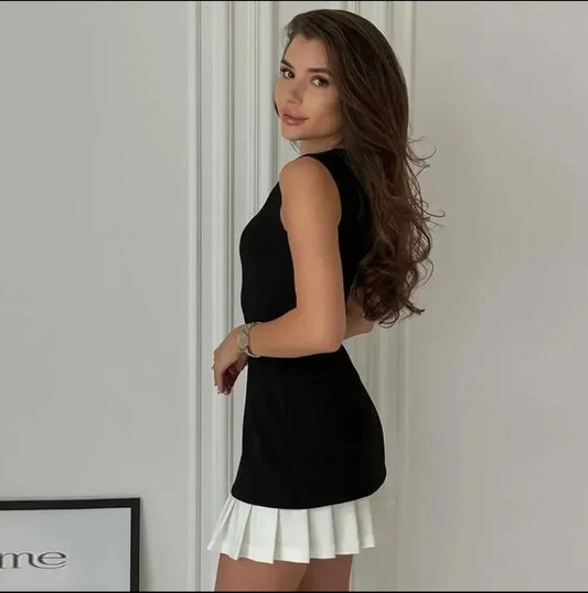 Women's 2024 summer 2-piece set, sleeveless mini dress with round neck, pleated skirt, two-piece set